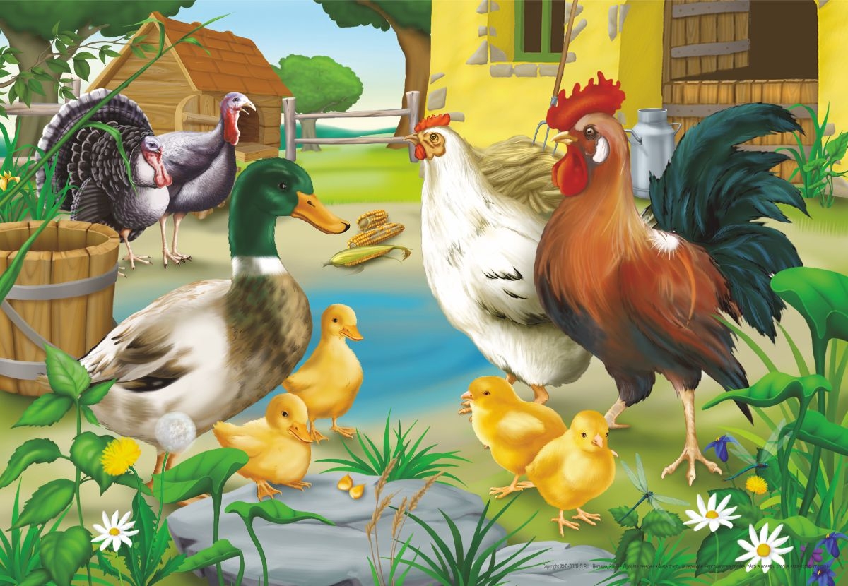 Accueil > Puzzles - Animaux de la ferme > Animaux de la ferme : poule, coq, canard, poussins et dindons