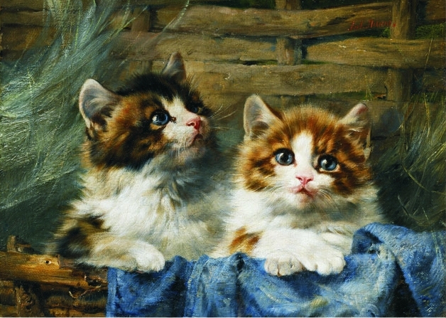 Accueil > Puzzles - Art > Julius Adam: Zwei Kätzchen im Korb