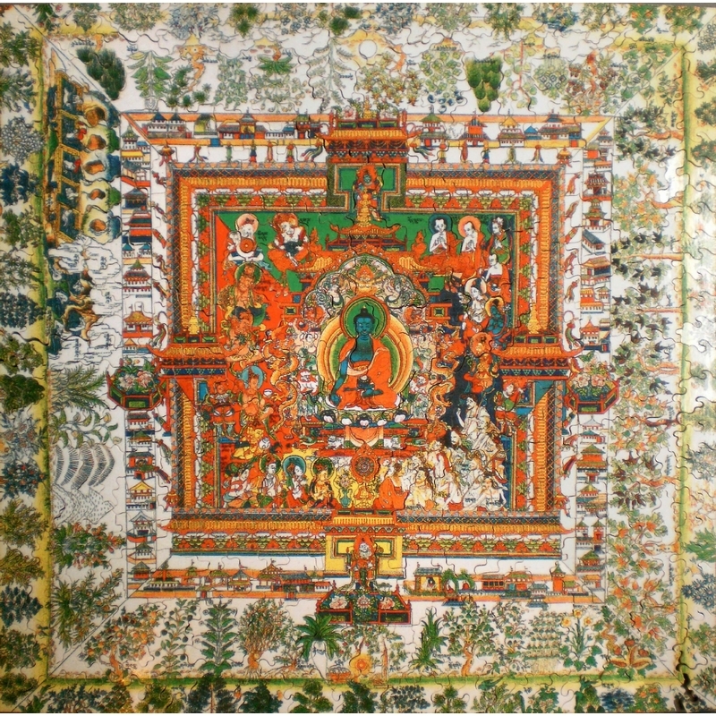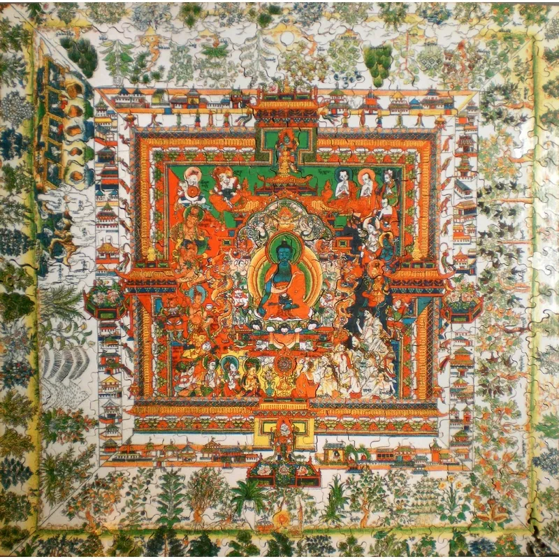 Handgeschnittenes Holzpuzzle - Tibetische Kunst: Medizin-Mandala