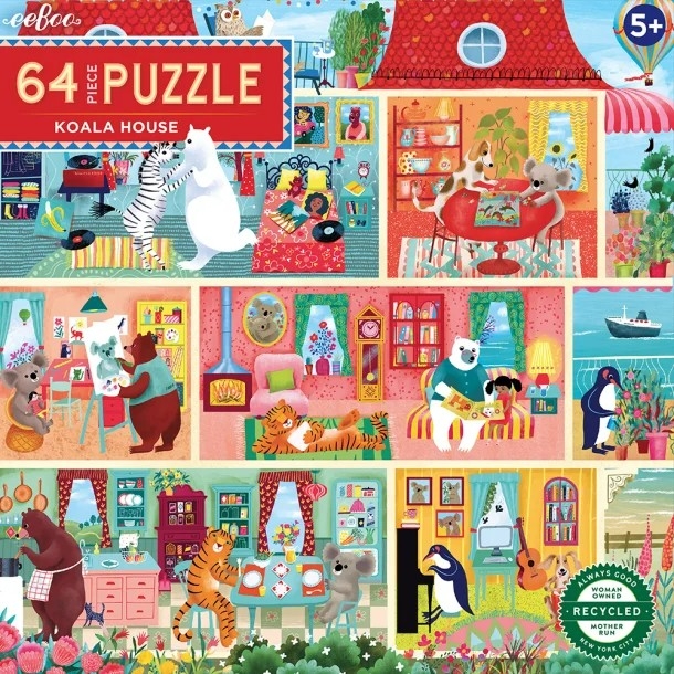 Les puzzles Eeboo sont faits à 90% de cartons recyclés, et imprimés avec des encres végétales pour un impact environnemental limité. Puzzle de 64 pièces, à partir de 5 ans, joyeusement illustré ! Taille du puzzle : 38x38 cm.