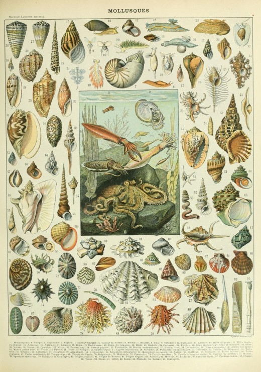 Illustration du Nouveau Larousse Illustré : Mollusques , XIXè Siècle