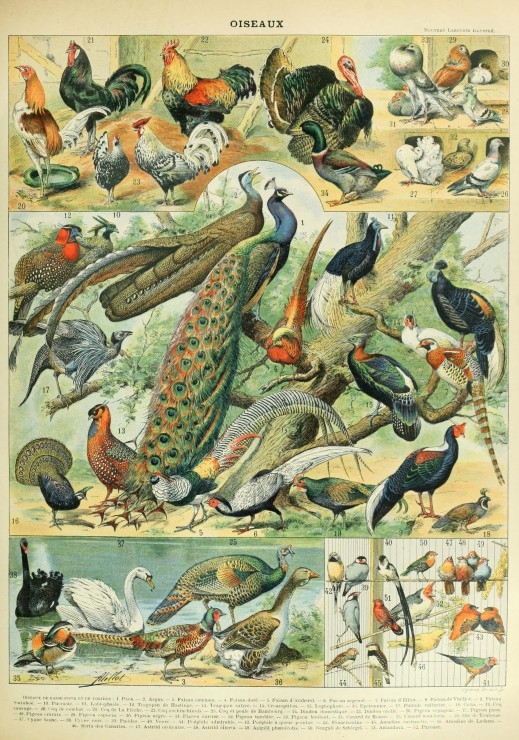 Illustration du Nouveau Larousse Illustré : Oiseaux , XIXè Siècle