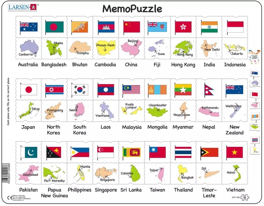 Puzzle Cadre - The Flags and Capitals of 27 Countries in Asia and the Pacific